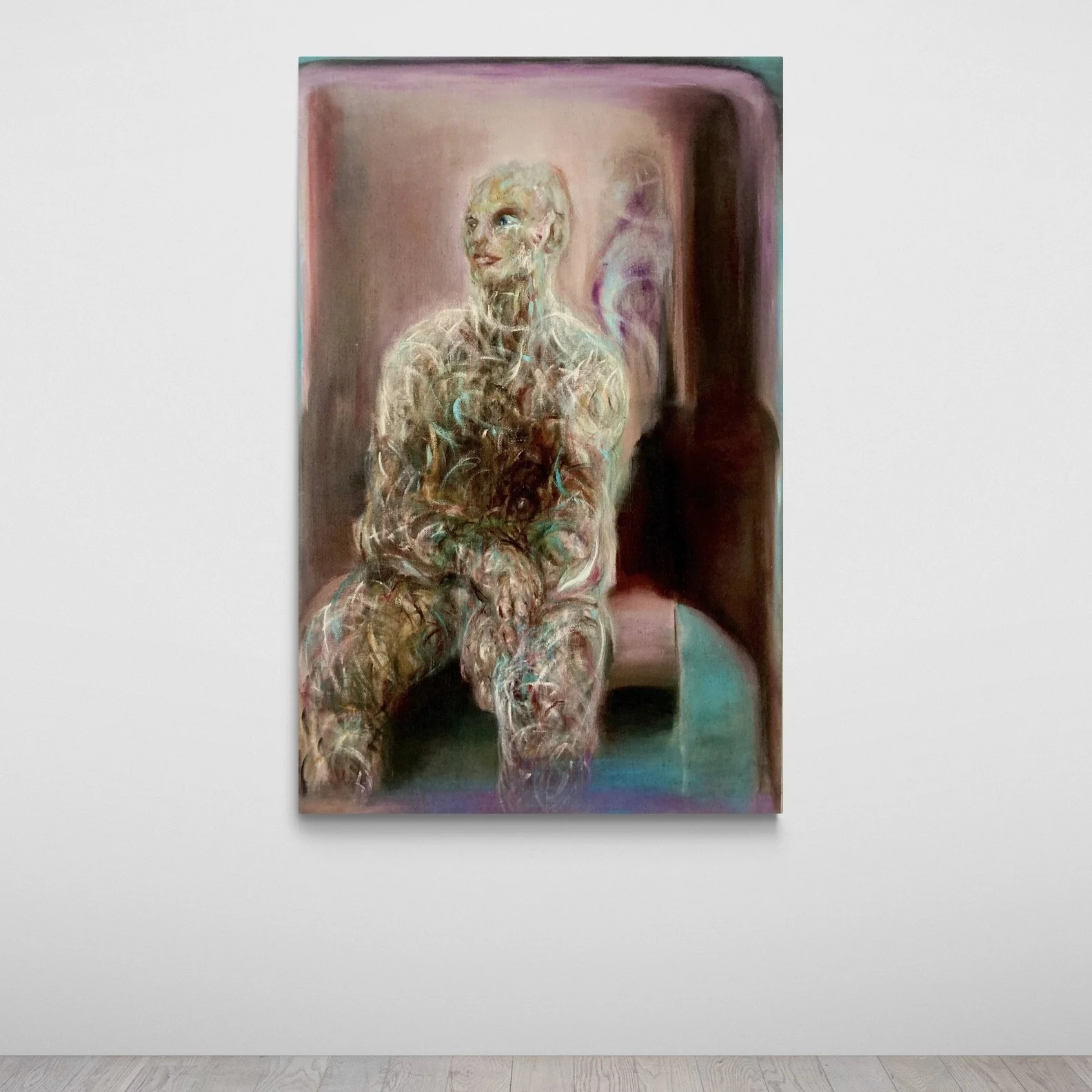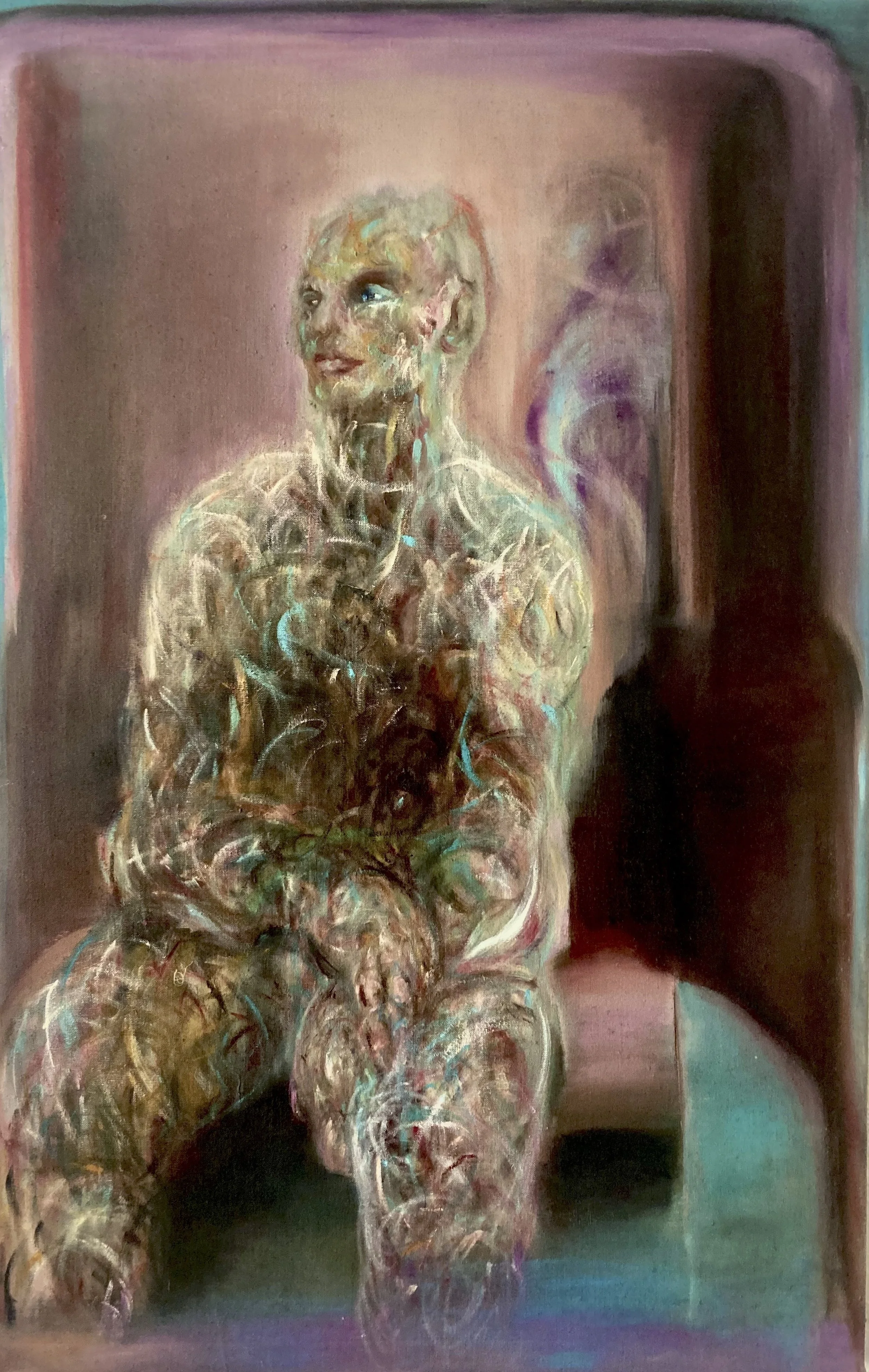 Each painting is the result of the neural system achieving a highly Stable Attractor State.This stability allows the brain to amplify a specific insight (a concept, a shape, a colour frequency) from the infinite field. The "State of Resonance" is the moment that amplification is at its peak—where the energy of the insight is strong enough to be translated directly into paint.